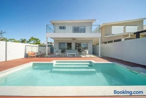 Large 5-Bedroom Family Retreat In Helensvale With Pool ゴールドコースト 別荘では、宿泊から徒歩で25分離れたホワイトウォーター・ワールドなどの自然スポットへ行きやすいし、プライベートなプールも提供しています。